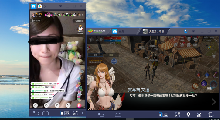 模擬器好處是可以多開,像這樣一邊看直播一邊顧遊戲,要馬找兩台手機來插著尿袋(行動電源)輪姦,要馬就像這樣一台電腦搞定!