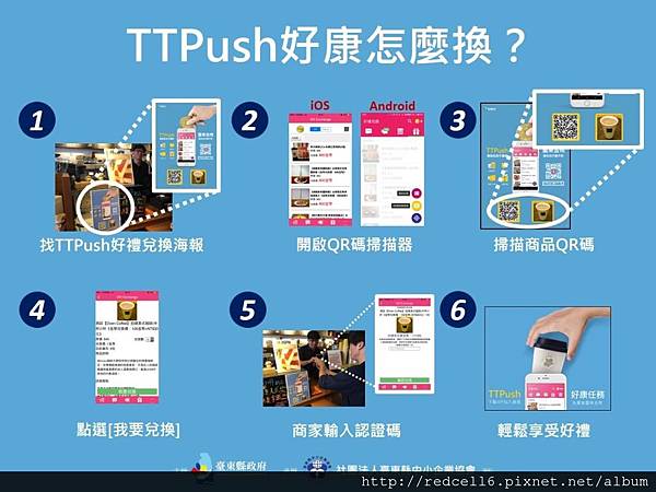 【▼】民眾只需要持智慧型行動裝置使用TTPush(踢一下)程式中儲存之會員帳戶內之臺東金幣,就可以到五十家以上臺東在地特約店家兌換精選商品,TT-PUSH(踢一下)絕對讓你遊臺東超有感!