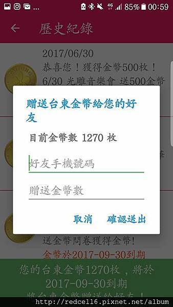 【▼】臺東金幣有三個月時效性~從TT-PUSH (踢一下)會員帳戶臺東金幣的交易中都有詳細紀錄可以隨時掌握~除了自用也可以轉送朋友或捐贈公益團體。 [贈送臺東金幣需要在設定中填具個人身分證字號資料]