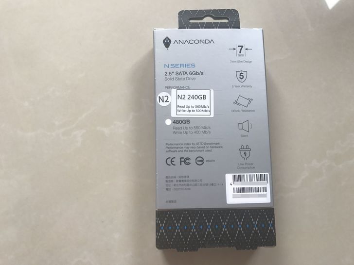Anacomda N2 240GB主角現身啦,中間的巨蟒Logo很搶眼