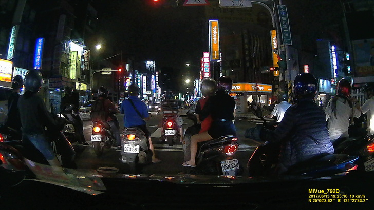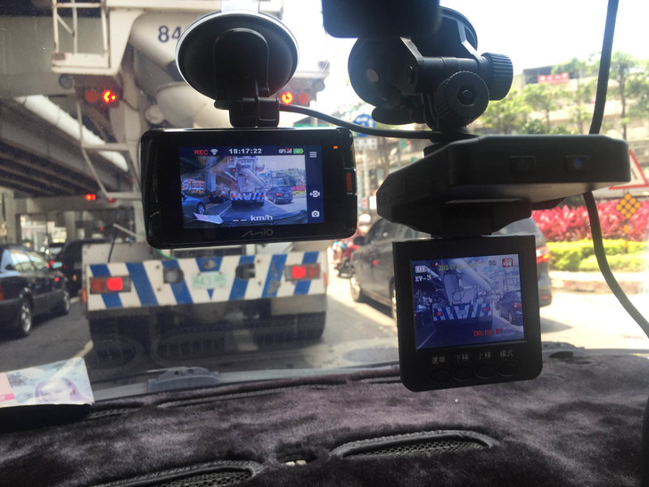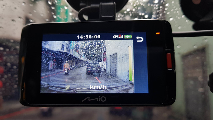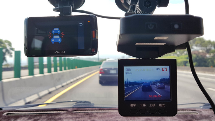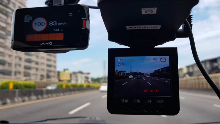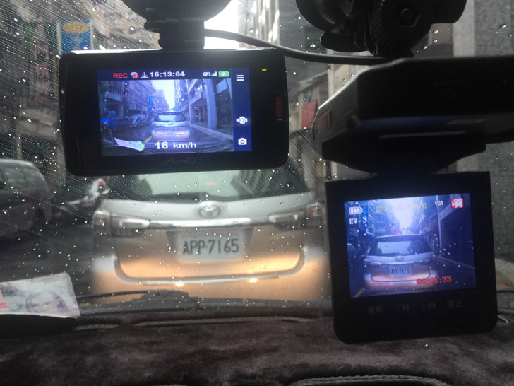 開車上路了,畫面中左邊是MIO MiVue 792,右邊是我原先的行車記錄器,可以看的出來廣角的效果非常明顯。畫面中GPS的功能尚未打開,並不是沒有從設定中開啟,而是需要一點時間才能跟衛星連線,原理跟一般的汽車導航一樣
