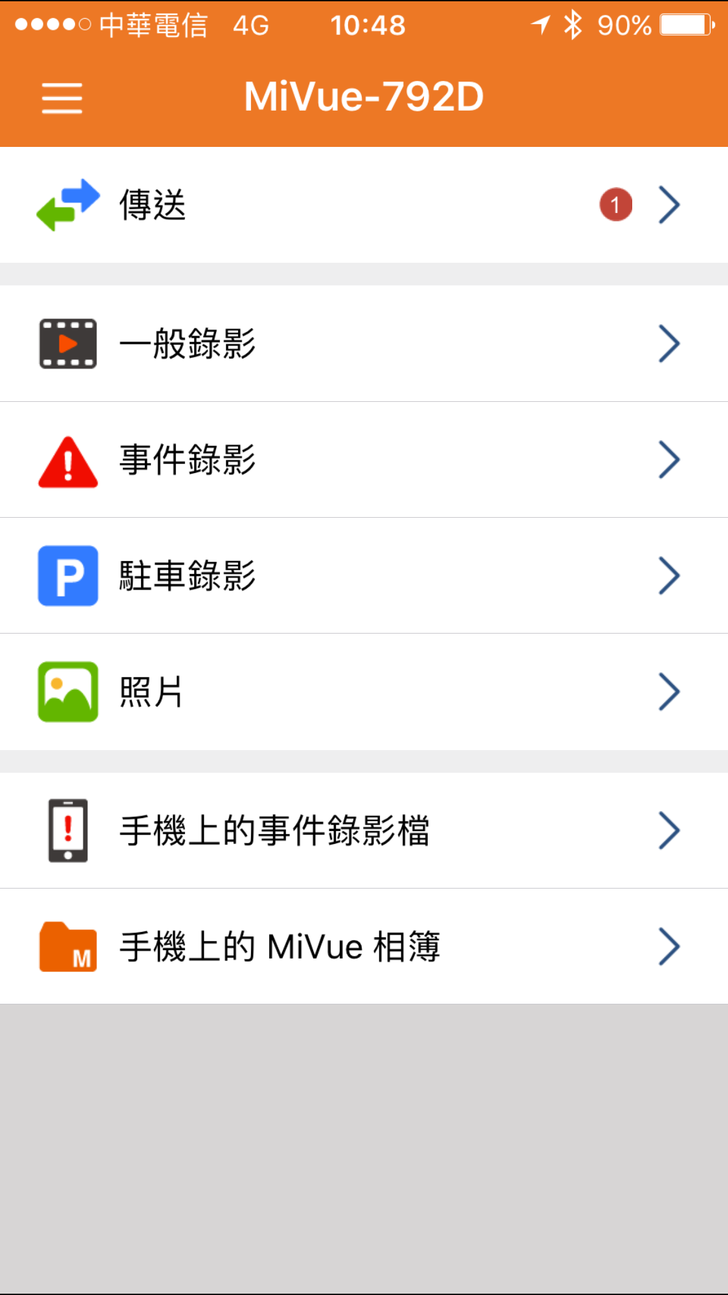 連線後狀態的介面是這樣,除了事件及駐車錄影的影片會自動上傳外,其他一般行車錄影及照片也可以手動上傳到手機中