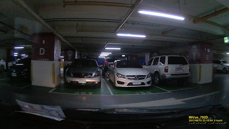 SONY星光級趕光元件真的超威,從照片可以看出連昏暗微光的停車場,仍然可以看清楚車牌號碼,最近我也使用了他牌近期的新型行車記錄器,就算開啟1440P的解析度,黑暗中的清晰度仍然是MIO MiVue 792勝出,有了這台行車紀錄器就可以偷偷的作檢舉達人了,那些喜歡在交流道插隊的危險駕駛們等著,不是不報,時候未到......