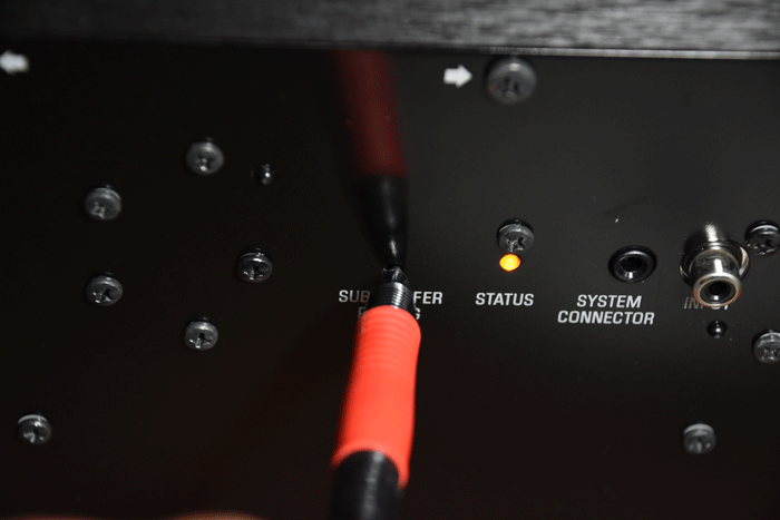 ▼ 只要 YSP-2700 和無線超重低音喇叭(NS-WSW121)在連線狀態下, STATUS 燈號都是會顯示綠色的,所以如果發現燈號不是綠色的,表示就是失去連線了。起初我不知道,以為有連線成功就好,但是偶爾會有連線跳掉的狀況,重低音就出不來,所以開機時還是確認一下是否有綠色燈號產生,不過說真的連線跳掉的情況,並不多見,使用者大可放心。