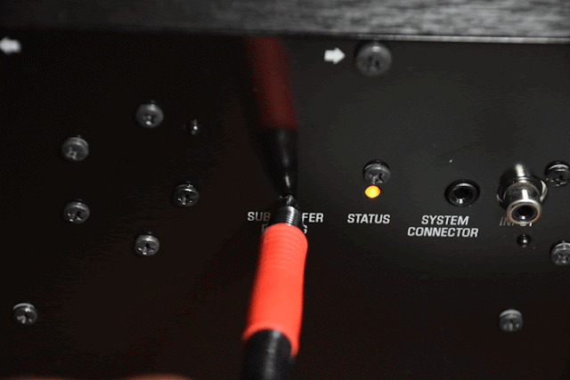 ▼ 我用原子筆去觸按,按住時會呈現橘色燈號,按住三秒後會變成綠色燈號,這樣表示 YSP-2700 和無線超重低音喇叭(NS-WSW121)連線完成。