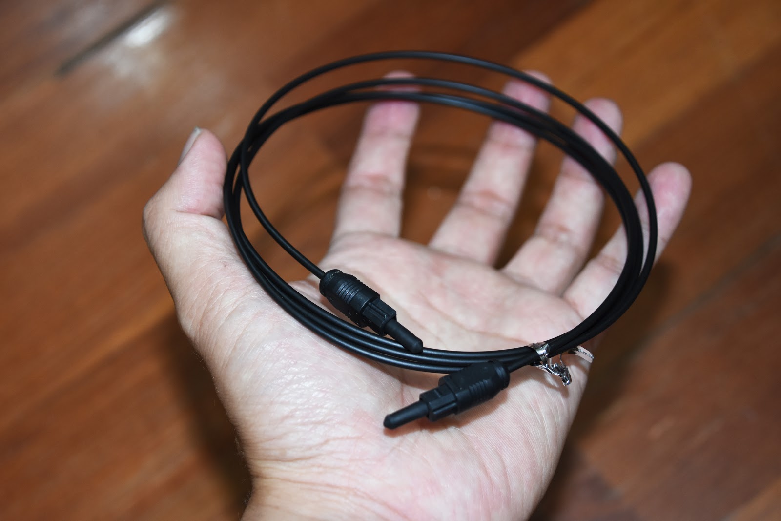 ▼ 還有送一條光纖傳輸線,是讓 Yamaha YSP-2700 主機連接有光纖輸出裝置的電視用的,我的電視就有光纖輸出,送這條線給我是很實用的,至少我不用再花個 300-400 元去買條光纖傳輸線。