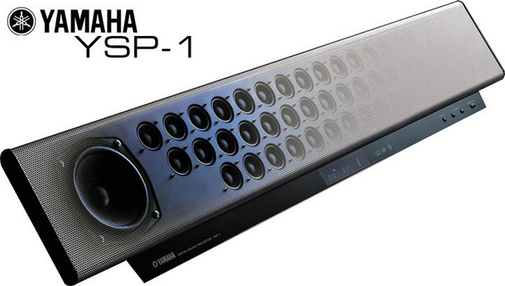 說到「單件式」家庭劇院的歷史,恰巧也是從我搬家的那一年(2004年)開始,Yamaha推出了世界第一台「單件式」家庭劇院YSP-1。當初Yamaha與英國合作,由軍事用途的相位陣列雷達(Phase Array Radar)原理取得靈感,在YSP-1上搭載40個4公分小單體+2個低音單體。這改變了家庭劇院的歷史,簡單來說,傳統的「多件式」家庭劇院快被「單件式」家庭劇院打趴了。原因很簡單啊,「單件式」家庭劇院可以滿足絕大多數人的需求,除非你是金字塔尖端的客戶,不然現在家裡安裝傳統「多件式」家庭劇院的人少了很多。
