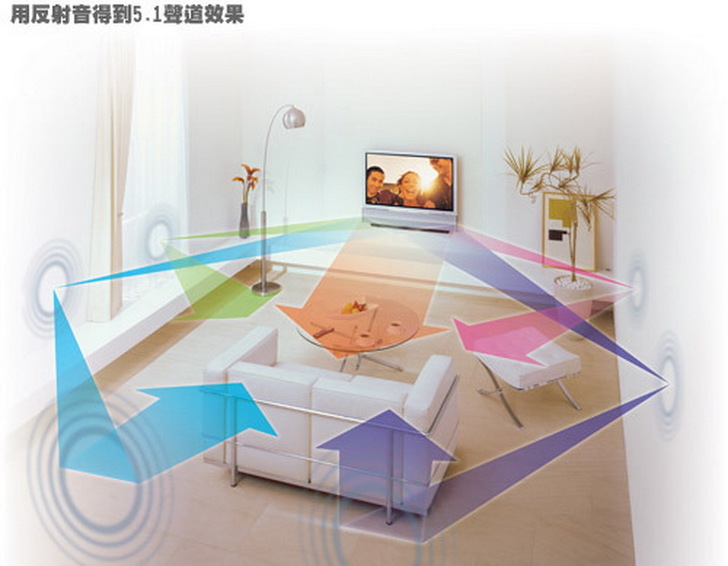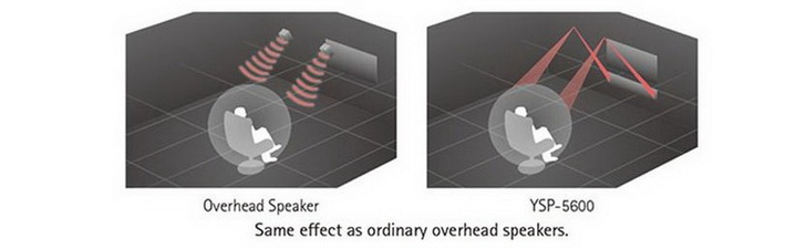 3.	虛擬環繞音效其實是聲音直接從正前方出來,所以聆聽者必須坐在播放機的正前方,聆聽區域有限,而YSP的真實環繞效果,是靠牆壁反射得來的,所以整間屋子好像結界一般,被音束包圍了,所以可感受環繞音效的空間比傳統虛擬音效來得大,適合較多人一起聆聽音樂。
