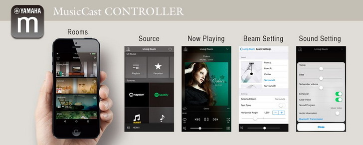 Yamaha控制單體的發聲,即可改變音束的方向與強弱,控制每個音束從牆面反射回來的方向,即可讓聲音來自多個方向,達成5.1聲道,甚至是7.1或7.1.2聲道效果。
