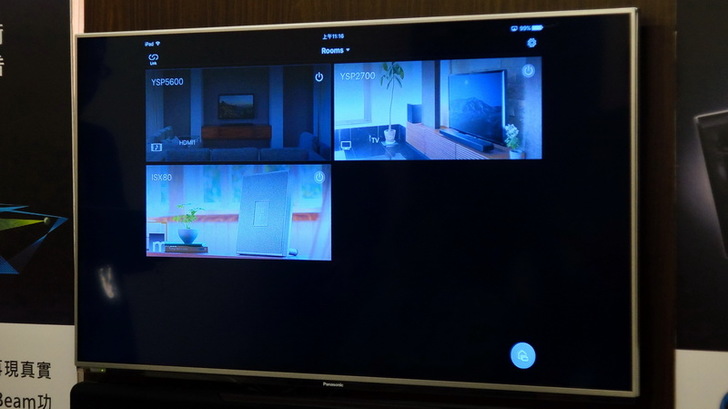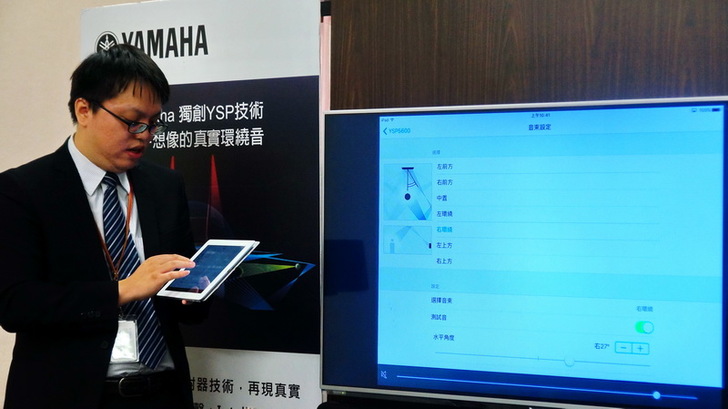 工作人員當場利用MusiCast連結平板,YSP-2700與一台不知道在哪的裝置ISX-80。