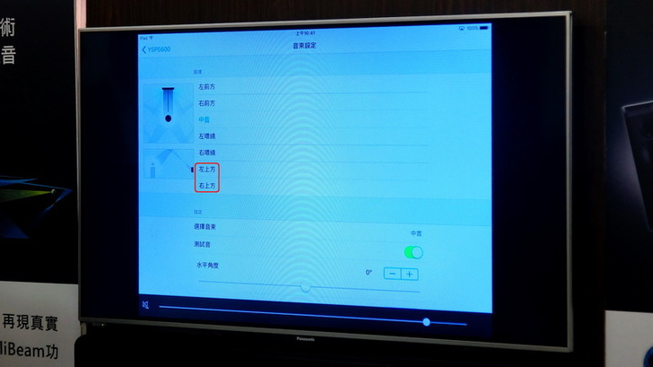 工作人員當下利用YSP-5600示範音束控制,利用內建的聲音測試功能,讓聲音一個聲道一個聲道放出來,真的很神奇,明明就只有前面一個單件式家庭劇院,但你就是可以聽到不同方位的聲音,甚至可以感覺到有聲音從頭頂上方出來,而且非常有感。
