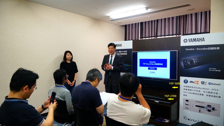 這是體驗會的視聽室,房間不太大,單件式家庭劇院產品放在電視下方,因為拍得不太清楚,所以我特別標示了一下。今天會現場展示YSP-2700與YSP-5600兩台單件式家庭劇院。