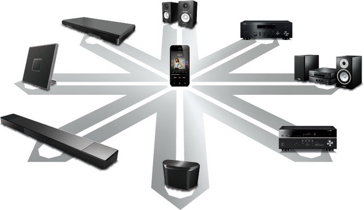 無論你的手機/平板是蘋果還是Android,只要安裝了MusicCast的APP,即可透過手機或者平板來操控有搭載MusicCast功能的Yamaha產品。實現多空間音源的概念。那什麼是多空間音源?你可以在一個房間或者不同房間享受同樣的音樂或者不同的音樂,而一切只靠你的手機/平板做連結。