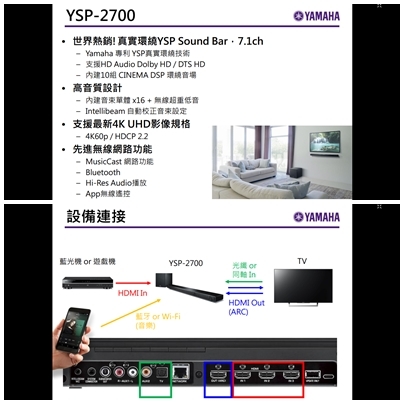 其實我最不喜歡介紹的,就是規格了,看官網不就有了嘛!!但試用報告還是得要講一下這台YSP-2700究竟有何特殊之處,讓我們家從狗窩變威秀影城。