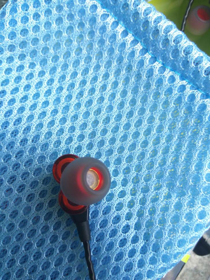 ▲近看一下耳塞配件,採用紅、半透明淡黑設計,算是屬於科技感的風格。