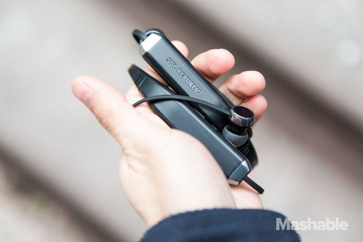 Sol Republic Shadow無線耳機可以被彎折收起,很容易就能塞進口袋裡/圖片:MASHABLE—LUKE LEONARD