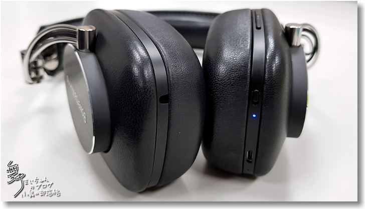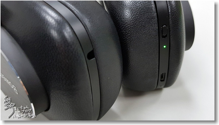 ▲左耳罩相對起來並沒有任何操控按鍵,但在下方有著一個孔洞,主要是使用耳機連接線時的出孔。