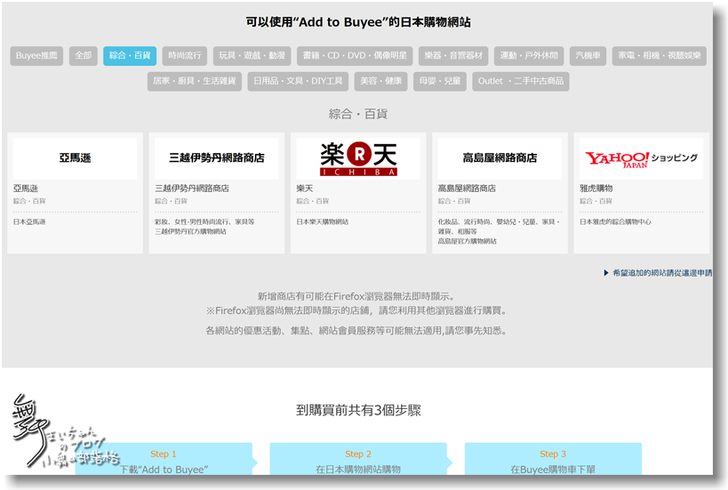 ▲現在透過支援『Add to Buyee』購物插件的網站,選擇性就變多了,如可以找找綜合/百貨類的店家。