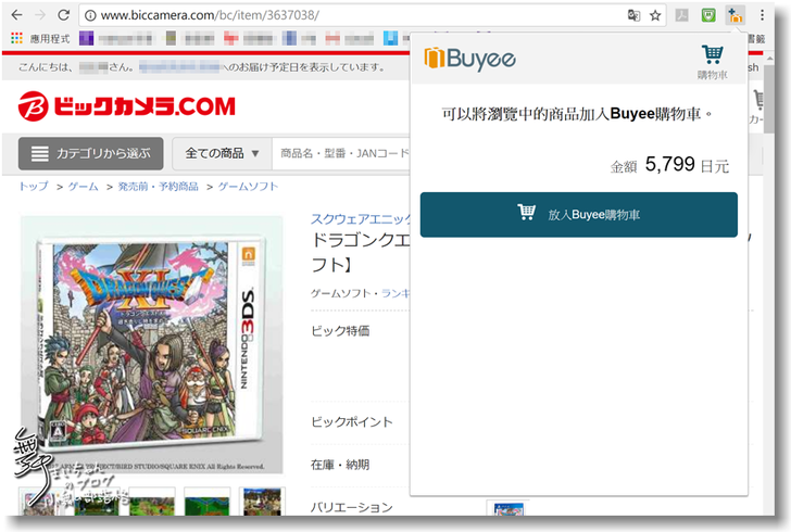 ▲右上也出現『Add to Buyee』購物插件的圖示,從頭到尾不到3分鐘的時間真方便。