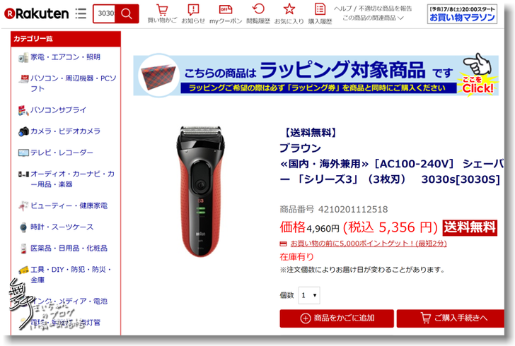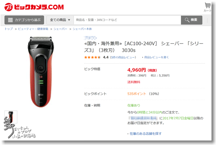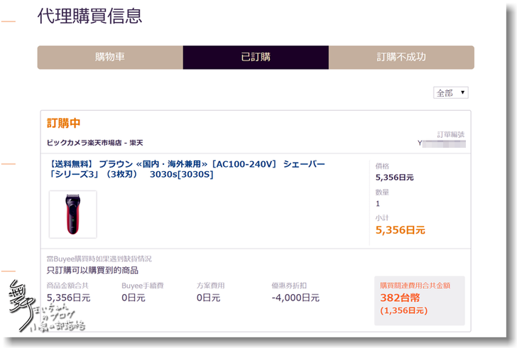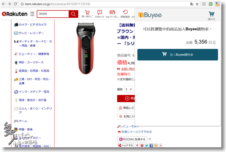 ▲回到Buyee來看看合作的日本3C網站,同樣款式電鬍刀只要4,960日幣,再加上日本消費稅也不過5,356日幣,換算台幣約1500元左右,這價差似乎有點大。