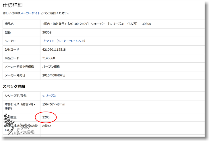 ▲你提醒我還要國際運費了,看看商品頁裡的產品重量是220克。