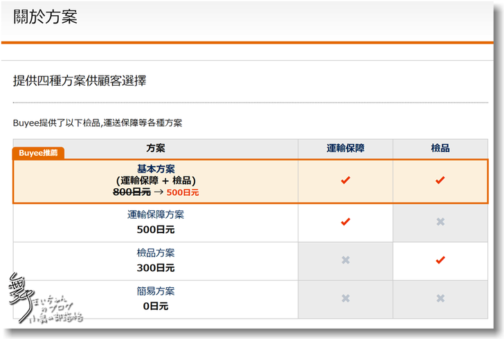 ▲建議如果是不熟的店家,或是拍賣代標的話,至少加買檢品方案比較有保障,而且現在還有優惠的基本方案,內容就包含了運輸保障與檢品方案,花費更少卻能避免後續的不便是挺划算的