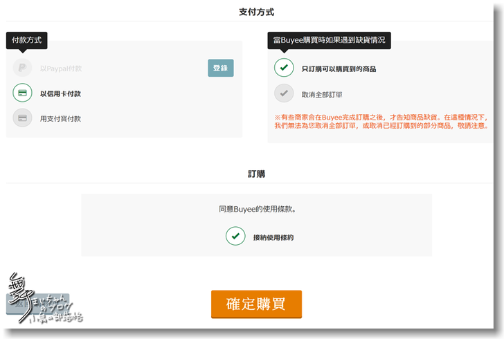 ▲選定好支付方式,按下「確定購買」就完成了Buyee代購囉。