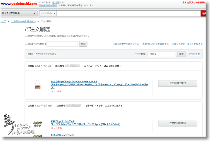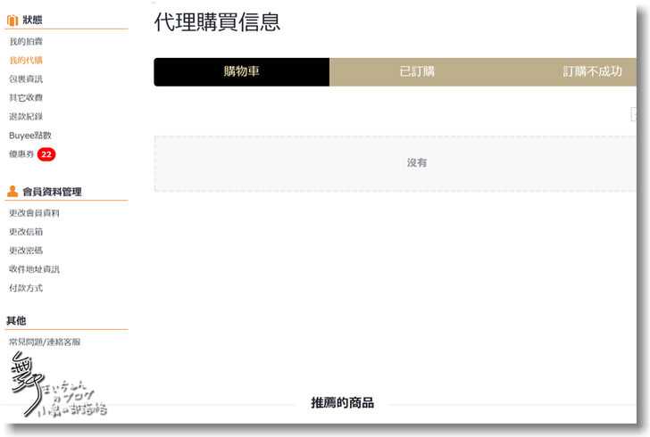 ▲如果是直購的話就是在『我的代購』頁裡,包含先放入購物車的品項、已訂購的商品或訂購失敗的內容等等。