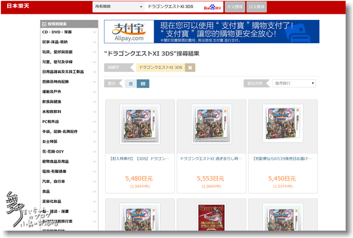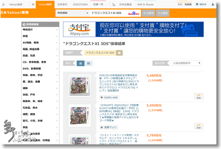 ▲以前我想買個遊戲片,透過Buyee大概只能在Yahoo購物/拍賣、日本樂天等網站購買。