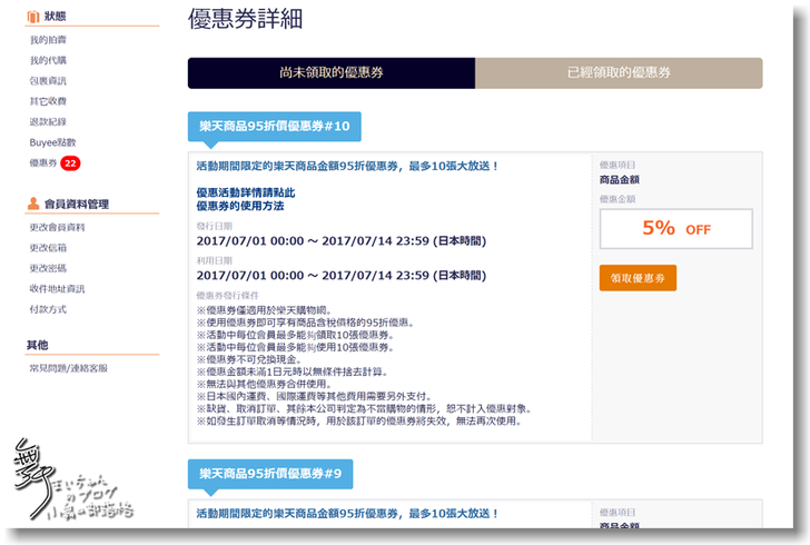 ▲Buyee裡隨時有各種促銷的優惠,可以在『優惠券』裡看到滿滿的優惠訊息。