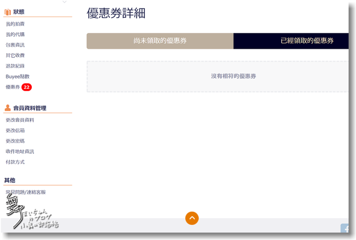 ▲回到領取的列表裡果然就有這一張優惠券了,把想要的優惠券都領完後,就可準備來購物囉。