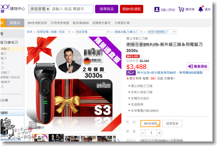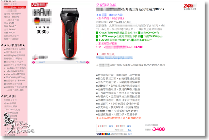 ▲這次的父親節禮物我打算購買一個電鬍刀,每年的七八月份各家電鬍刀廠商都有大量的促銷活動,這時購買最划算;來看看知名24H電商的價格......要3.5張小朋友。
