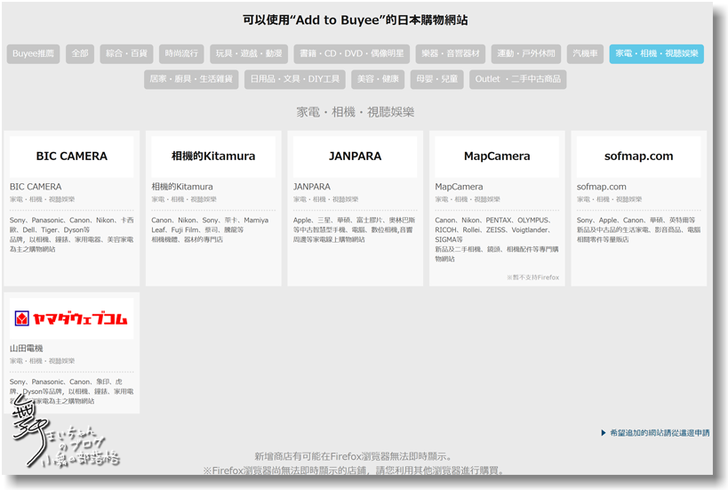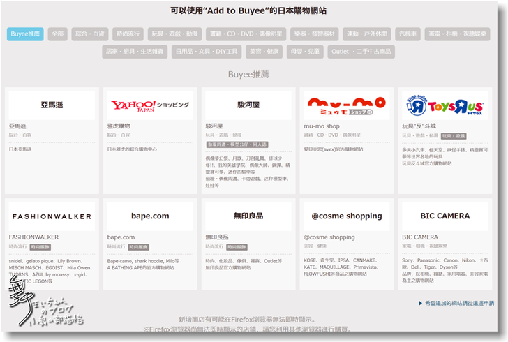 ▲而支援『Add to Buyee』購物插件的日本電商數量超多,而且一直在增加,類型也十分廣乏。