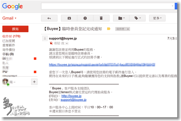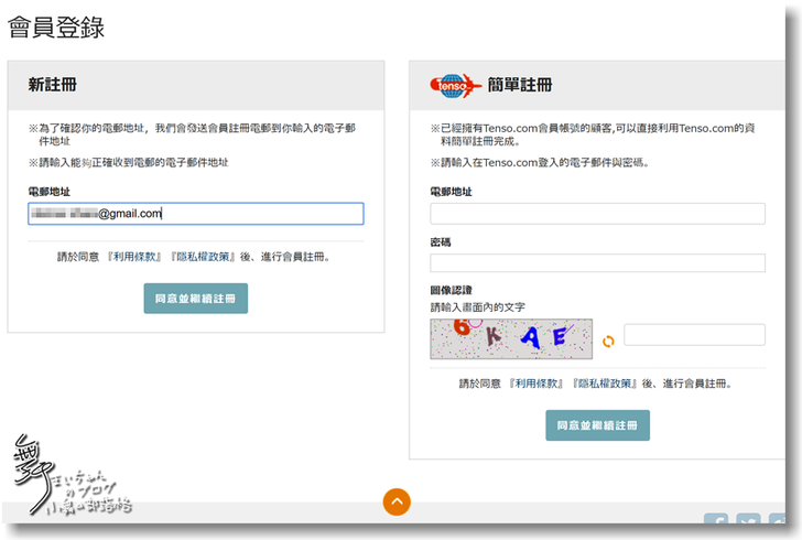 ▲填入Email後,會先收到一個臨時會員的郵件,透過信中的連結來完成正式的帳號註冊。
