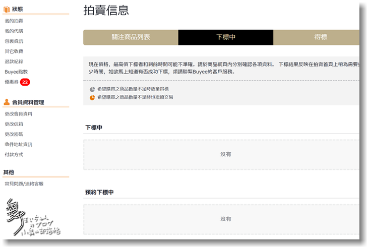 ▲在『我的拍賣』裡會有透過Buyee下標的項目,清楚顯示各下標物的狀態。