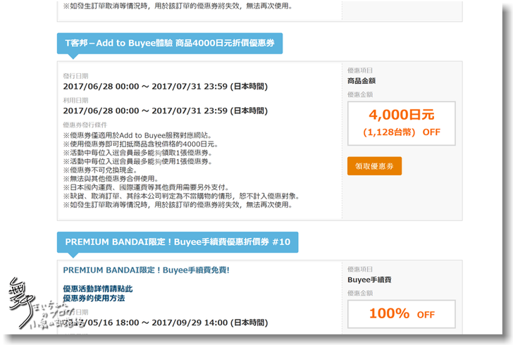 發現了T客邦和Buyee代購網站合作推出購物活動