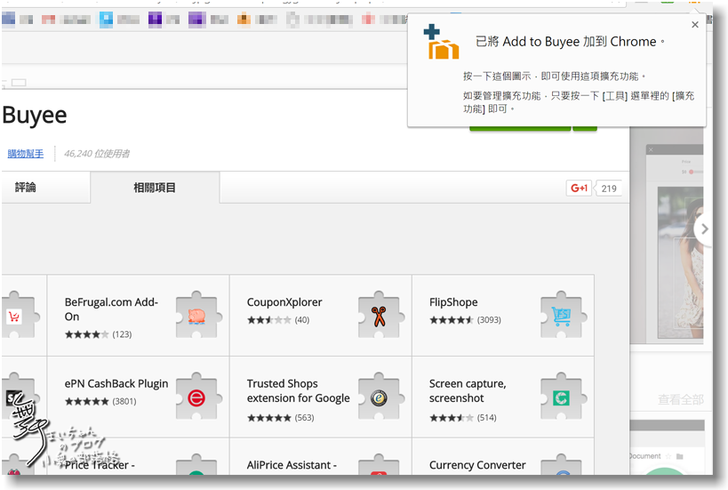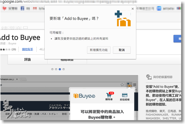 ▲只要同意新增後,就完成了『Add to Buyee』購物插件安裝。