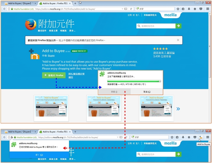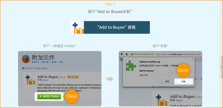 【▼】小編以Firefox作示範,直接在瀏覽器內的附加元件中打 "Add to Buyee"即可找到,接著新增至Firefox,安裝完後建議重開一下瀏覽器。