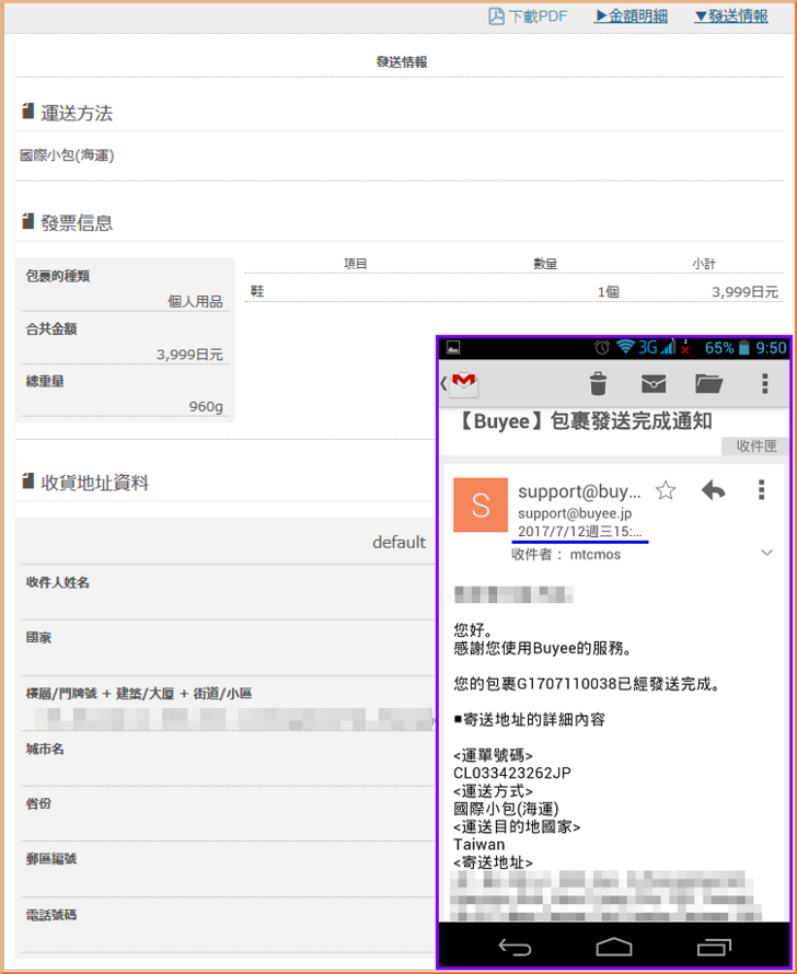 【▼】小編7/11下午五點半才付款,隔天7/12下午三點就已經完成包裹發送,Buyee真的媲美PChome購物阿~