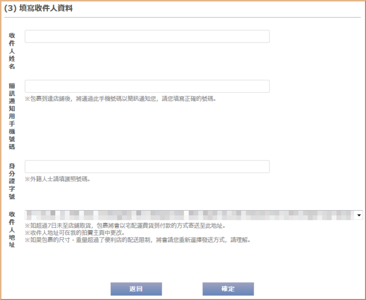 【▼】選好寄送方式後,就會叫您填寫收件人資料,一般都會由會員資料管理中直接帶入,寫得越完整,交易過程也越有保障。