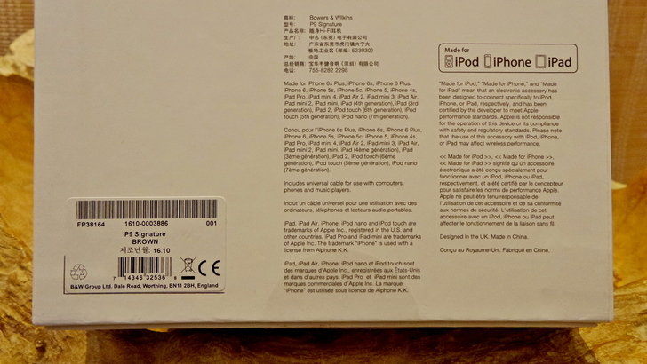 【▼】P9 Signature彩盒底部有P9 Signature的商標名稱、產品序號、與生產地等資訊,P9 Signature同時也是一款針對蘋果iPod、iPhone以及iPad所量身打造的耳機,能與每台裝置完全相容,並確保最佳品質。