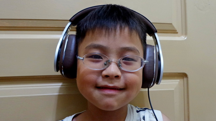 【▼】小編將P9 Signature調整到最小給小朋友試戴,結果小朋友試戴發現太小,耳朵明顯露在外面,這時就得調整頭帶,讓好聲音在耳朵裡「餘音繞梁,三日不絕」。