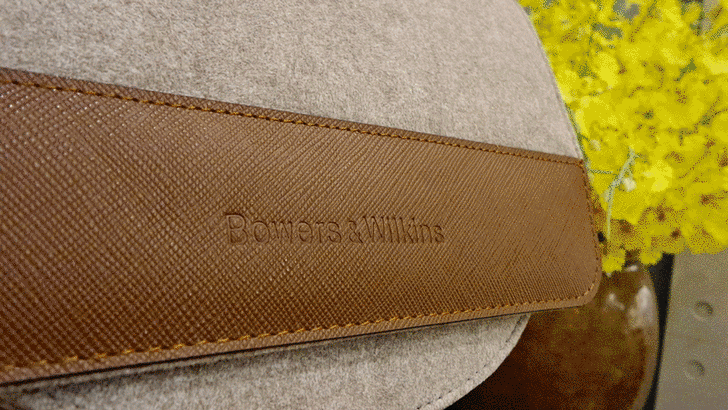 【▼】P9 Signature耳機線的出線口位於左聲道,橢圓機殼的黑色鏡面印有白色Bowers & Wilkins英文字樣,與義大利Scabrenta Saffiano咖啡色皮革互相輝映,不論工藝質感、配色,都散發出簡約奢華的氣息。