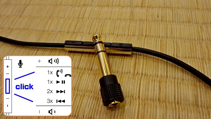 【▼】三線式線控除了上下兩鍵是作為聲音大小的調整外,中間鍵則屬於多功能作用,包含在音樂模式下按一下是播放/暫停音樂,若是接手機有來電時,按一下則轉為通話;連按兩下則是切換到下一首歌曲,連按三下則是切換到上一首歌曲。