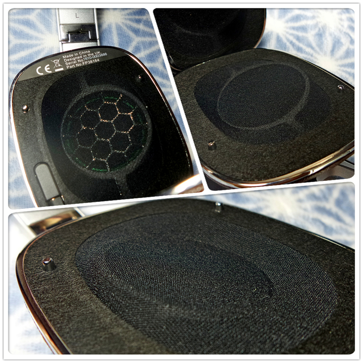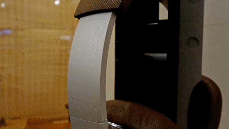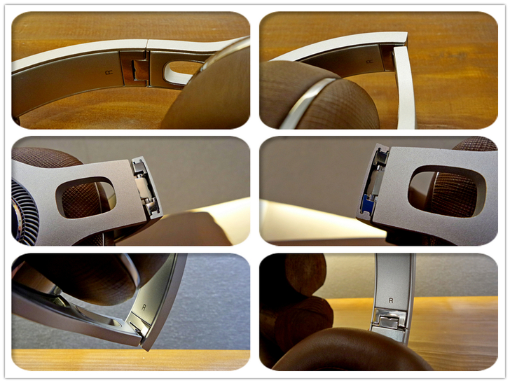 【▼】在P9 Signature左右兩邊的耳罩外圍支撐點由金屬所構成,機身與中間黑色鏡面的連接是靠上百條的橡皮所組成,具有豐富的韌性,能依頭型輕易調整耳罩的角度。P9 Signature內部線路只有22ohms抗阻,一般手機或高清音樂播放器都可以輕易推動,不用再輔以耳擴,也能原音重現。