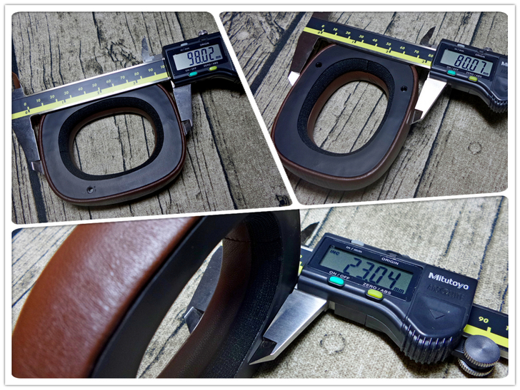【▼】以P9 Signature拆下的耳罩作尺寸的量測,耳罩長寬分別為98mm、80mm,而深度更有23mm,小編實際配戴時,耳朵可以完全放入耳罩內,不單是有效隔絕外部噪音,更十分貼耳、舒適。