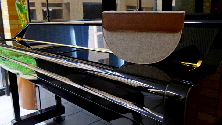 【▼】當然最好的收納方式就是放入Alcantara®人造麂皮與Saffiano皮革混搭設計的配件包內,配件包容量夠大,除了能擺放收折後的P9 Signature,連線材、轉接頭都能一併放入,甚至還能放個播放器也沒問題。