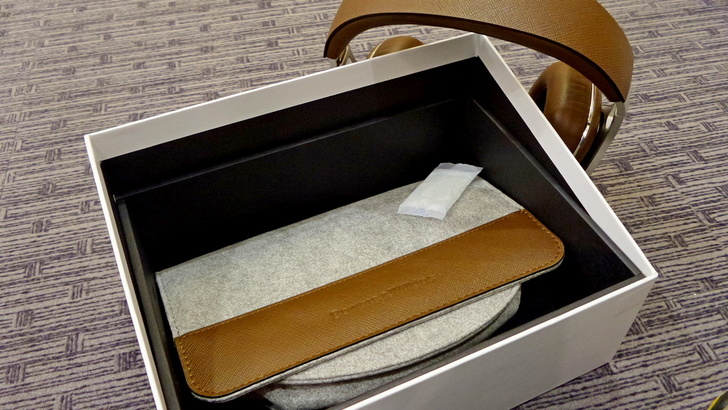 【▼】整個灰色絨面加上頂級皮革面,配件包為P9 Signature耳機帶來高度的可攜性與保護性。