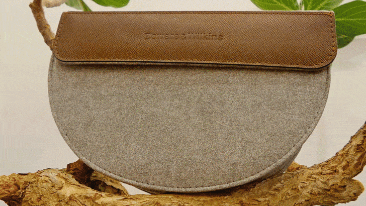 【▼】隨行於P9 Signature的配件包內部還有線材與使用說明書等小配件,除了收折好收納之外,帶出去旅遊也不較不容易遺失。這個配件包其實來頭也不小,頂級材質是由義大利的Alcantara® 高科技人造甕皮所精心打造,正面縝密的編織印有Bowers & Wilkins品牌,質感UpUp!