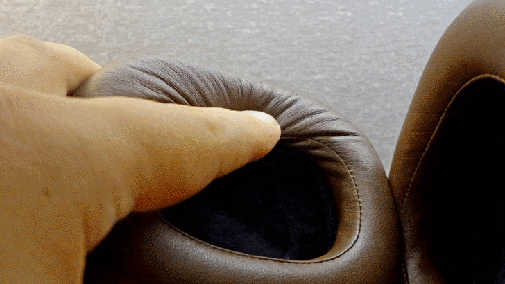【▼】從頭帶內緣到耳罩都是採用真皮記憶海棉,真皮記憶海棉與人造海綿,最大的差異就在於配戴時「感應體溫而軟化」,越戴只能說越舒服,小編會習慣在睡前聽些古典音樂,就是因為P9 Signature太舒服,常常起床發現還戴著耳機...XDDD